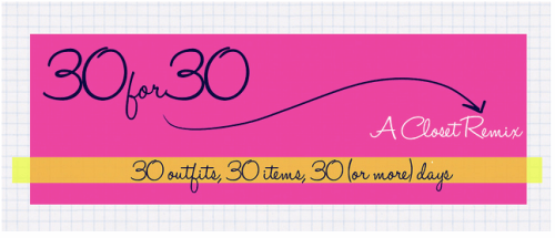 You may have noticed that a strange new badge popped up on the side of my layout yesterday. Here’s why: I have decided to take part in Kendi’s 30 for 30 Challenge. The challenge is to choose 30 items of clothing to remix into 30 outfits over the next month. Accessories and coats don’t count but shoes and tanks do. There’s another catch as well–no buying things for the next 30 days either. Ideally, the challenge teaches people to re-work their wardrobe and realize that “I have nothing to wear” days don’t exist.